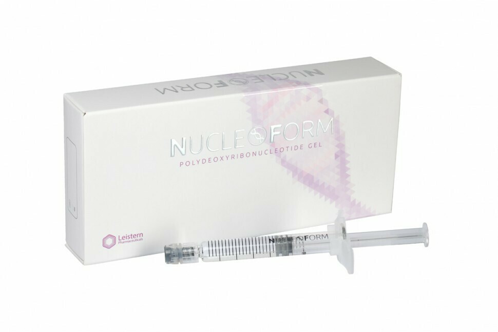 NucleoForm - препарат, насыщенный нуклеотидами и высокомолекулярной гиалуроновой кислотой, которые, проникая в ткани, оказывают широкий спектр эффектов. Помимо Препарат устраняет выраженную сухость кожи, угревую сыпь, постакне, гиперпигментацию, помогает восстановить кожу после глубоких лазерных процедур;застойные пятна постакне;купероз;гиперпигментация, дисхромия;признаки хроно- и фотостарения и их профилактика;морщины периорбитальной области;лифтинг больших участков тонкой кожи;неглубокие шрамы и рубцы;профилактика и лечение выпадения волос (трихология).
